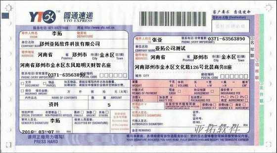 圓通速遞打印模版,在“快遞單模板”中點擊“在線下載”即可下載該快遞單打印模板,其中寄件人信息可以在“系統管理”-》“系統參數設置”中進行維護。如有其他問題,請與我們技術支持聯系解決!