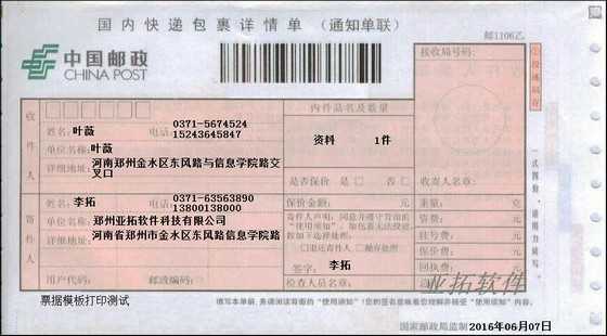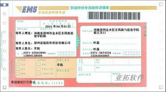 • EMS郵政小包打印模板