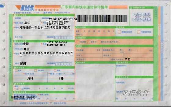 • EMS省內(nèi)特快打印模板