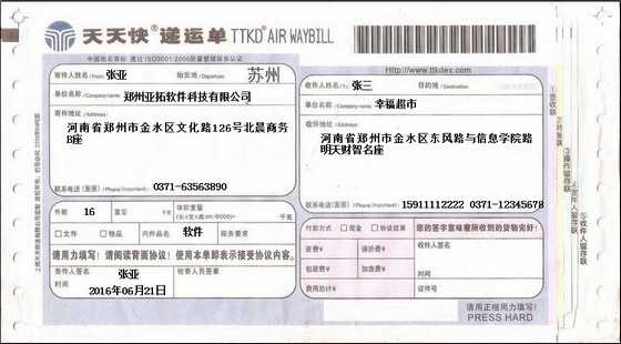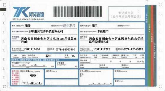 • 天天快遞打印模板