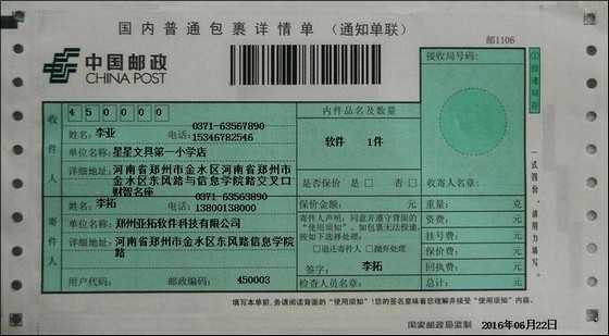 • 中國郵政國內普通包裹打印模版
