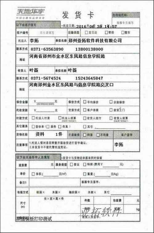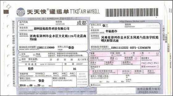 • 天天快遞打印模板