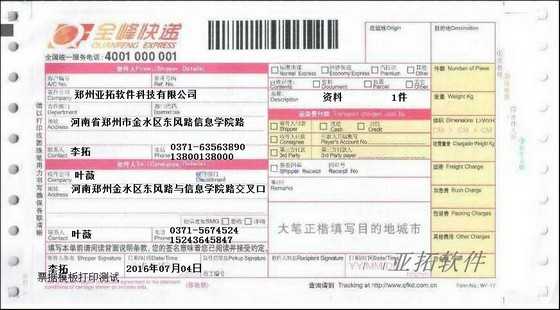 • 全峰快遞打印模板