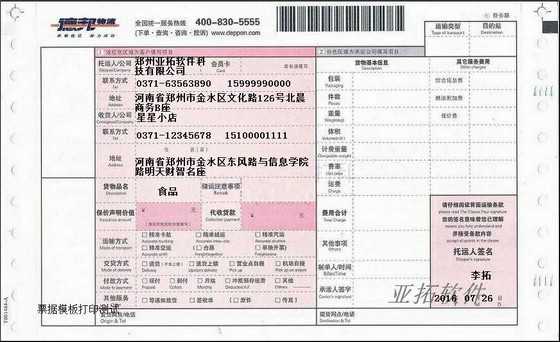 • 德邦快遞打印模板