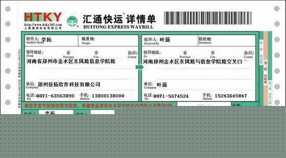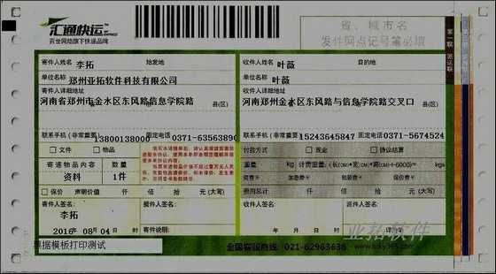 • 匯通快運打印模板