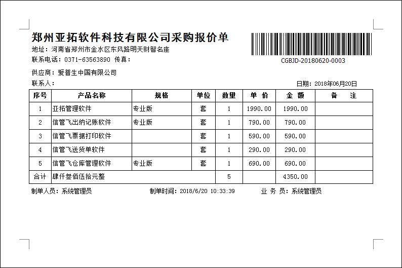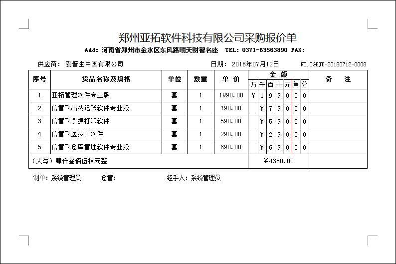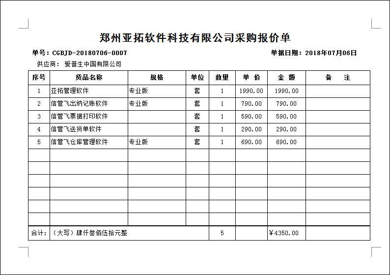 • 采購報價單打印(BJ08)