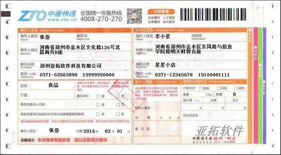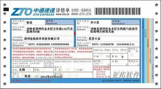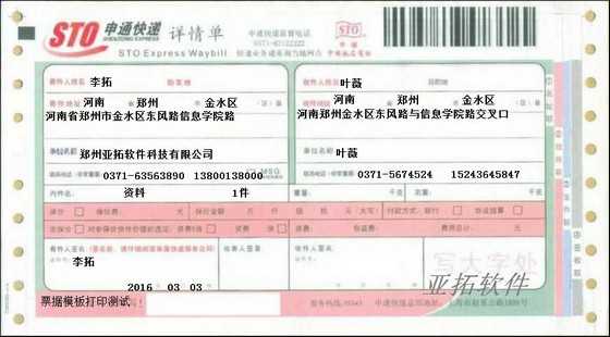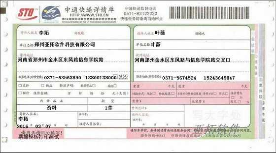 • 中通速遞打印模板