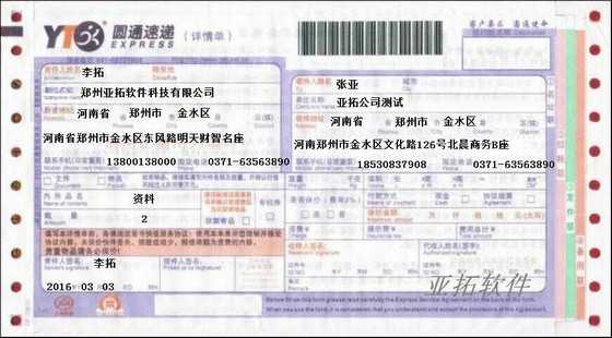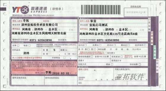 • 圓通速遞快遞打印模板