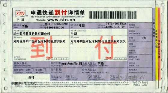 • 申通快遞到付打印模板