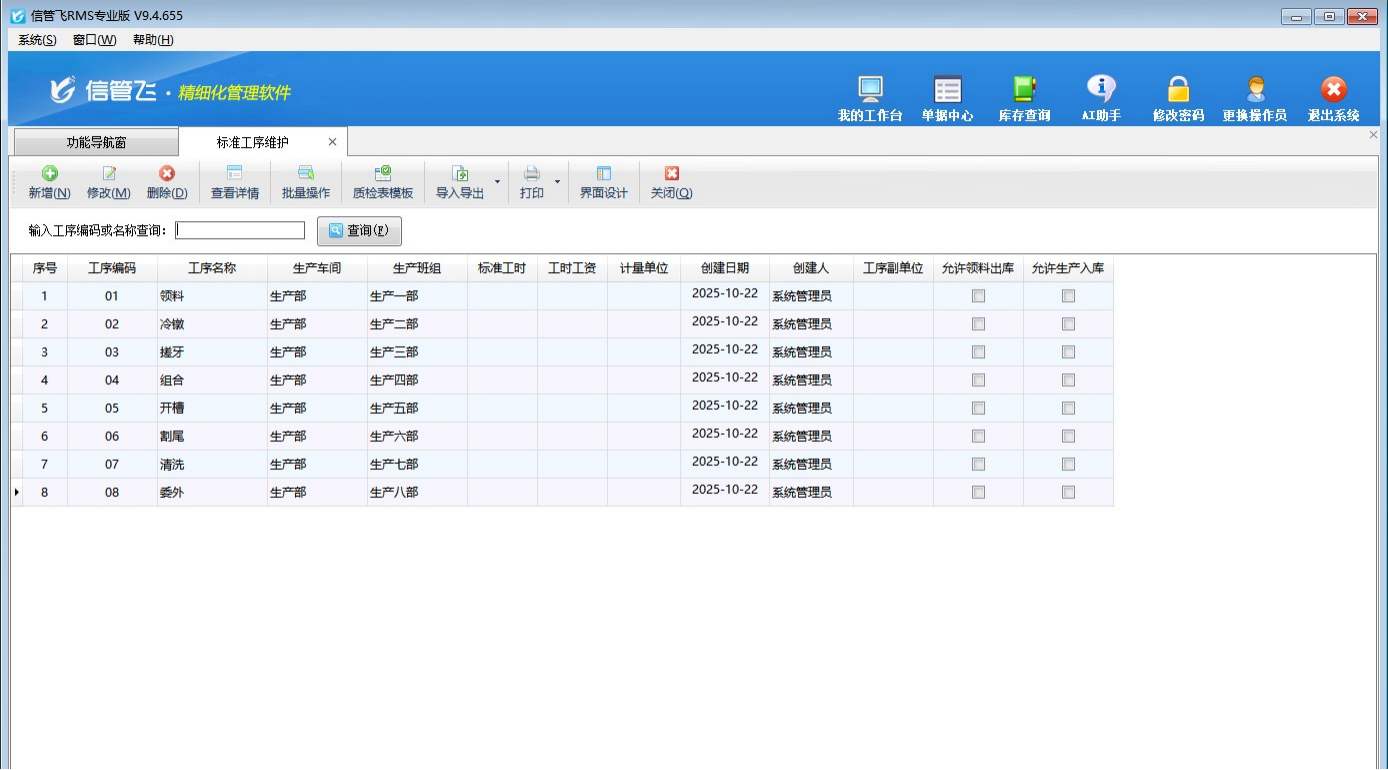 新增:點擊“新增”按鈕,可以新增標準工序。