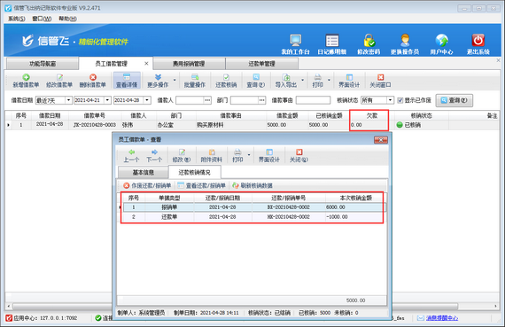 ????歡迎下載試用這款支持員工借款及還款管理的出納記賬軟件:信管飛出納記賬軟件。
