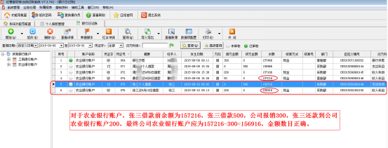 ????此時,我們到現金日記賬或者銀行日記賬界面可以查到自己做的單據信息,公司資金經過借款還款之后是正確的數額。