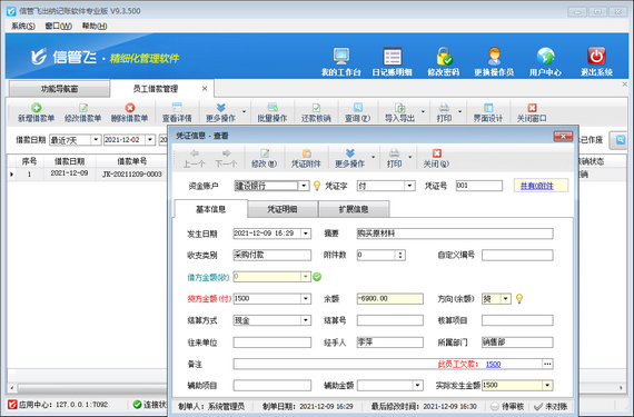 # 6.9.4 出納記賬軟件如何登記員工借款?