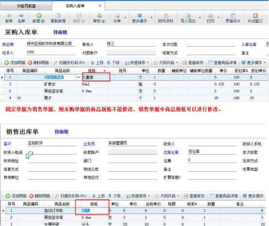 亞拓管理軟件星光版、標(biāo)準(zhǔn)版、專業(yè)版和紅管家倉(cāng)庫(kù)管理軟件等都支持直接在單據(jù)明細(xì)中修改規(guī)格,為了更靈活的控制商品規(guī)格的修改,軟件增加可指定銷(xiāo)售單或采購(gòu)單允許修改。指定單據(jù)后,未指定的則不能修改單據(jù)明細(xì)中的規(guī)格。以亞拓管理軟件為例,示范如何指定具體單據(jù)規(guī)格可修改? 在導(dǎo)航欄選擇系統(tǒng)管理,打開(kāi)系統(tǒng)管理中的系統(tǒng)參數(shù)設(shè)置,選擇業(yè)務(wù)參數(shù)找到“業(yè)務(wù)單據(jù)明細(xì)參數(shù)”中的“在單據(jù)明細(xì)中可修改商品規(guī)格”,后邊的參數(shù)值固定為銷(xiāo)售單據(jù)(默認(rèn)是所有單據(jù)),如下圖1所示:圖1 固定