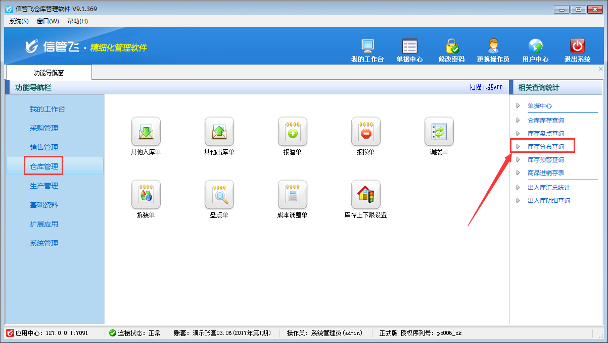 歡迎免費下載試用這款可查看商品在不同倉庫的庫存分布情況倉庫管理軟件信管飛倉庫管理軟件