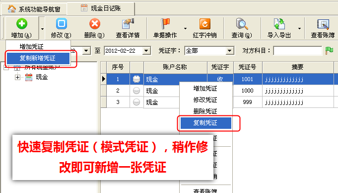 3、現金日記賬列表和銀行日記賬列表界面優化,增加更多快捷操作方式。