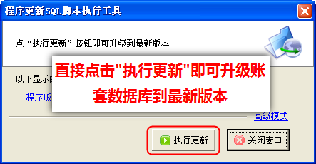 5、優化升級更新步驟,直接點擊執行更新就可以升級賬套數據庫到最新版本。