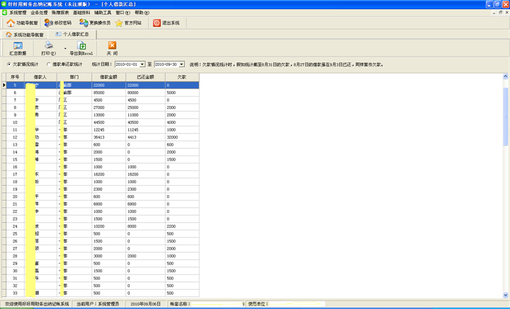 好好用財務出納記賬系統發布V2.6(Build 374)下載地址:http://m.hzyouth.org.cn/download/FPSetup_Msde.exe更新內容:(2010-09-06)1、解決英文操作系統或未采用默認日期格式,比如日期間隔符采用/(2010/9/6)時,新增憑證、新增應收應付款時報錯的問題。2、個人借款統計,增加欠款統計功能,此功能與個人借款匯總功能的不同在于:欠款情況