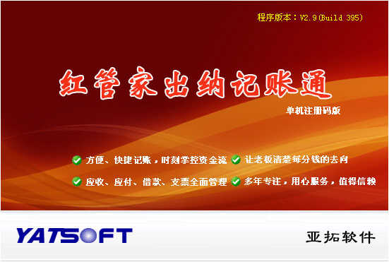 隨著國慶假期接近尾聲,亞拓軟件發布一款出納軟件新產品——紅管家出納記賬通,該系統界于好好用出納記賬系統和好好用出納日記賬系統之間,功能比較實用、易用,是亞拓公司三大產品品牌之一(好好用、亞拓、紅管家)。鑒于此前安裝程序自帶的數據庫引擎MSDE在部分機器上無法安裝,且安裝包較大,我們這次將紅管家出納記賬通安裝程序中集成了一款小巧綠色的數據引擎(整個安裝包共13MB),方便大家安裝。紅管家