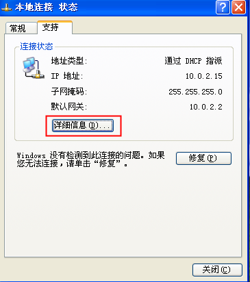 ②在“網絡連接”的界面,如圖4所示,雙擊“本地連接”,會出現如圖5所示的“本地連接狀態”的界面,點擊“支持”,點擊“詳細信息”按鈕會出現網絡連接的信息,如圖6所示,此時記下“IP地址”、“子網掩碼”、“默認網關”和“DNS服務器”的信息,后面固定IP地址時需要用到。