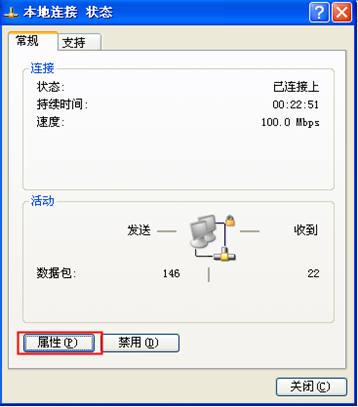 ③在“本地連接狀態”界面選擇“常規”,如圖7所示,點擊“屬性”按鈕會出現如圖8所示的“本地連接屬性”的界面。
