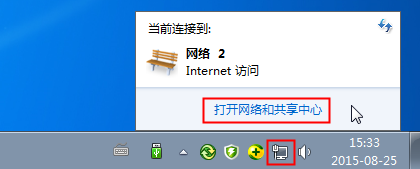 ①首先在電腦右下角找到網絡連接的符號,點擊會出現當前網絡連接的提示,如圖10所示,點擊“打開網絡和共享中心”會出現如圖11所示的界面,點擊“本地連接”。