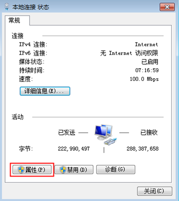 ③把“網絡連接詳細信息”的界面關閉,回到“本地連接狀態”的界面,如圖14所示,點擊“屬性”按鈕,會出現“本地連接屬性”的界面,如圖15所示。