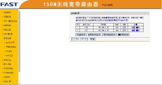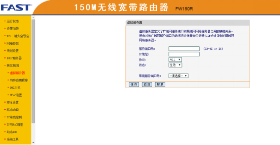①如果主機(jī)電腦是通過路由器上網(wǎng),就需要在路由器上配置端口映射。(這一步驟需要對(duì)路由器進(jìn)行配置,圖1和圖2為迅捷FAST 150M路由器的設(shè)置方法。每種路由器的配置稍有不同,可在購買動(dòng)態(tài)IP解析服務(wù)后,聯(lián)系我們客服幫助進(jìn)行遠(yuǎn)程配置)