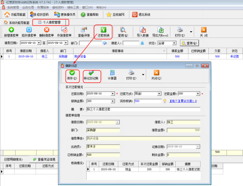 歡迎下載這款簡(jiǎn)單易用的財(cái)務(wù)出納記賬軟件進(jìn)行個(gè)人借款管理,免費(fèi)下載地址:下載財(cái)務(wù)出納記賬系統(tǒng)