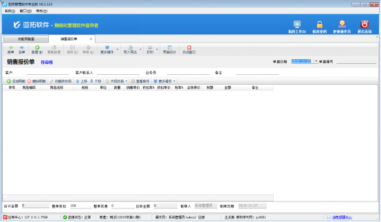 亞拓管理軟件支持銷售報(bào)價(jià)單功能,且操作簡單,其具體操作流程如下: