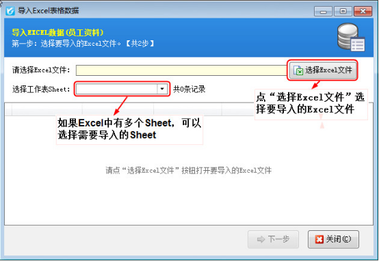 2、選擇Excel文件:一個Excel文件(工作簿)可能包括多個Sheet(工作表),軟件支持選擇導入不同的工作表,如下圖3所示。