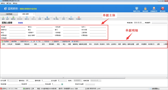 下面我們以亞拓管理軟件專業版采購入庫單為例詳細介紹下如何在亞拓管理軟件中設置單據默認值。
