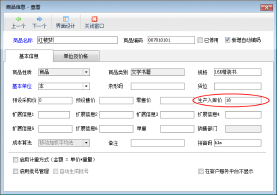 入庫單價:進入倉庫的成本價,軟件默認取商品信息中的“生產入庫價”,也可以設置為根據原料金額和直接費用等核算出成本價。