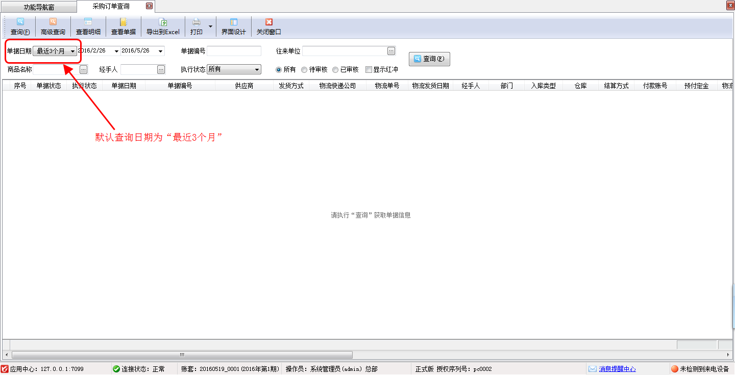 亞拓管理軟件精細化管理軟件進銷存管理軟件記賬軟件)及紅管家倉庫管理軟件內都包含了統計查詢功能(采購單匯總表、銷售單匯總表、銷售單明細查詢、銷售毛利匯總等統計查詢報表),軟件內統計查詢功能默認的查詢日期為“最近3個月”(如下圖一所示),但是如果需要修改默認查詢日期,該如何修改呢?下面我們以亞拓管理軟件專業版為例詳細介紹下軟件內如何修改默認查詢日期。