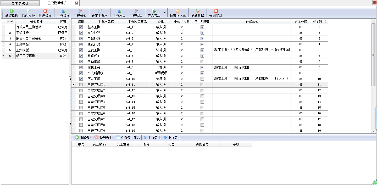 工資模板維護界面