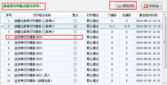 以送貨單軟件為例,示范如何選擇默認(rèn)模板以外的打印模板,打開一個(gè)送貨單(確認(rèn)開單狀態(tài)),點(diǎn)擊工具欄的打印按鈕下的“選擇格式打印”可以看到所有的打印格式,選擇需要的打印模板,點(diǎn)擊預(yù)覽打印,預(yù)覽打印界面點(diǎn)擊打印圖標(biāo)就可以打印單據(jù)。如下圖1、2、3所示: