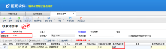 在“應收款管理”中選擇應收款,點擊“收款結算”進入收款結算單界面,本次結銷金額和收款金額輸入一致,點擊“保存”則應收款正常結銷。如下圖1、圖2所示:
