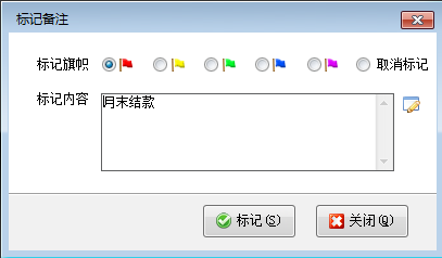 在“標(biāo)記備注”窗口選擇標(biāo)記旗幟,錄入標(biāo)記內(nèi)容,然后點(diǎn)擊“標(biāo)記”按鈕。如圖2所示: