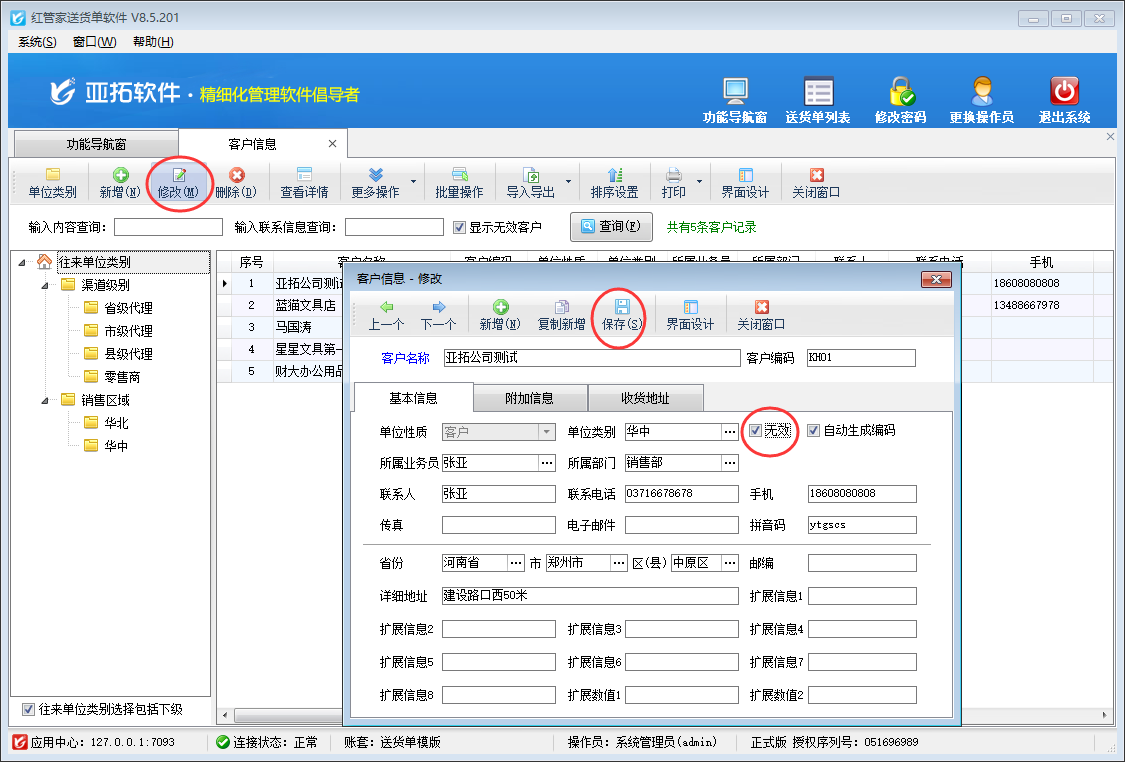 送貨單軟件內如何將客戶信息設置為無效?