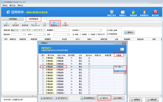 亞拓管理軟件的銷售單(采購單)匯總表、銷售訂單(采購訂單)匯總表、銷售單(采購單)明細(xì)表、銷售訂單(采購訂單)明細(xì)表都支持在界面設(shè)計(jì)中配置“擴(kuò)展信息”作為查詢條件。