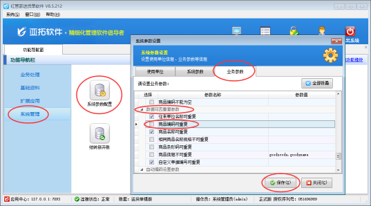 亞拓軟件自主研發的亞拓管理軟件紅管家送貨單軟件紅管家倉庫管理軟件等都支持新增商品信息,為了避免增加的商品信息出現重復,軟件支持參數設置商品編碼不可重復。