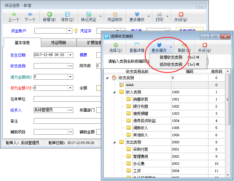新增收支類別:點(diǎn)“新增”按鈕,可以在選擇的當(dāng)前收支類別下增加下級(jí)收支類別。