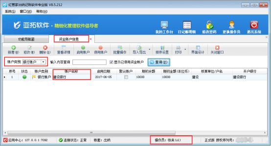 紅管家出納記賬軟件、亞拓管理軟件、紅管家送貨單軟件都支持設(shè)置資金賬戶的控制權(quán)限,本文以出納記賬軟件為例,示范下如何控制操作員的資金賬戶權(quán)限?