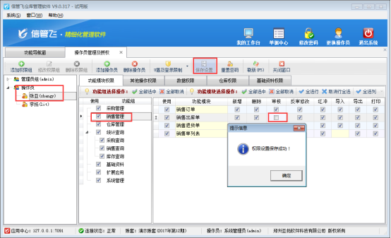 信管飛倉庫管理軟件如何設置操作員不能審核單據?