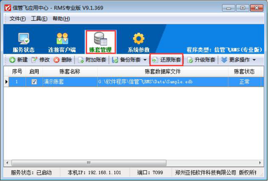 本文以“信管飛RMS軟件”為例,示范如何還原備份賬套數據。