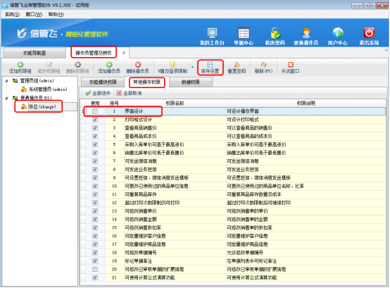 軟件內(nèi)都可以設置多個操作員并對操作員賬號設置權限,部分用戶不希望員工賬號可以隨便修改軟件界面格式,如何設置呢?本文以信管飛倉庫管理軟件為例詳細介紹一下如何設置操作員不可進行軟件界面設計?