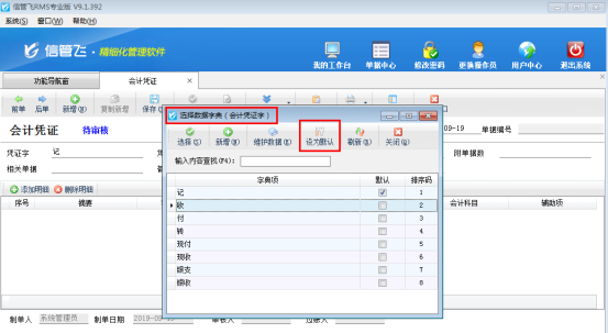 信管飛RMS會計憑證如何設置默認憑證字?