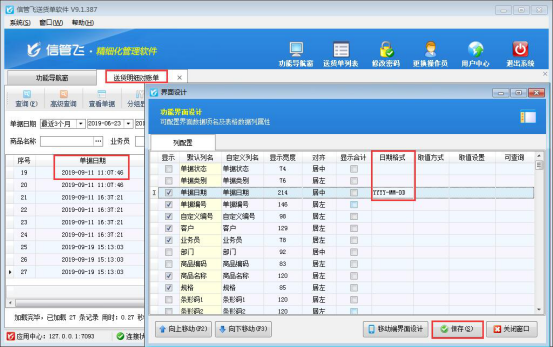 界面設(shè)計保存設(shè)置好退出,可以看到送貨明細(xì)對賬單界面上的單據(jù)日期格式不顯示時間,如下圖所示: