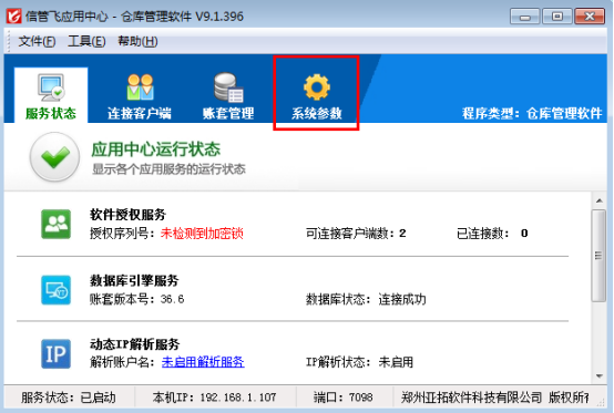 應用中心的管理和配置會對軟件的運行產生重大影響,因此軟件提供增強安全驗證功能,啟用安全驗證后執行賬套管理、系統參數設置等功能時會要求輸入密碼,驗證密碼通過后才可以進行相應操作。下面我們以信管飛倉庫管理軟件應用中心為例詳細介紹下如何啟用安全驗證功能。