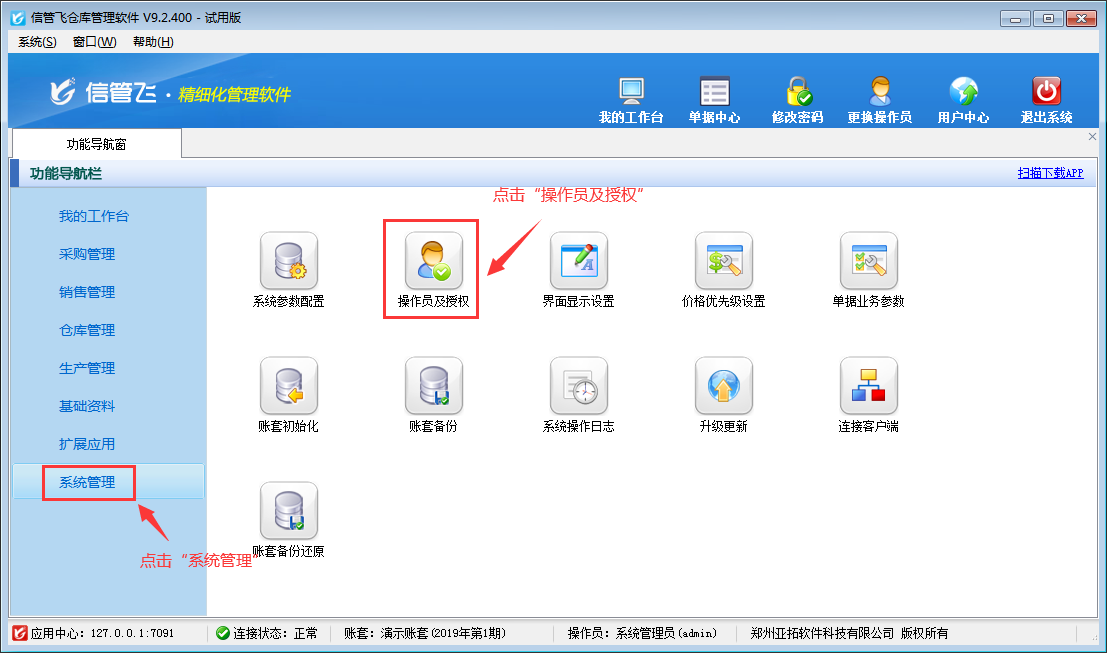 歡迎免費下載試用這款可設置操作員權限倉庫管理軟件信管飛倉庫管理軟件。